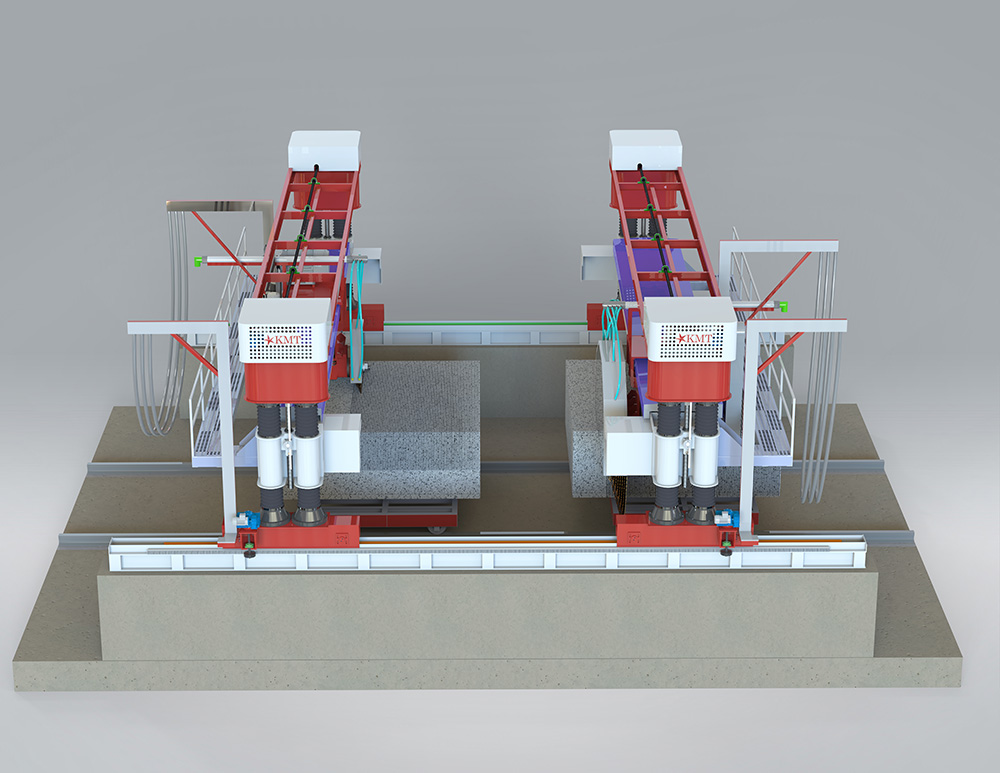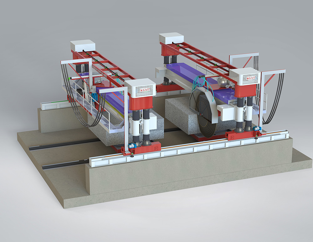 With an expanded foundation width of 33 feet, our machine accommodates multiple large blocks simultaneously, effortlessly increasing processing capability and eliminating space constraints. This enhancement doubles processing capacity, allowing for faster, more efficient cuts, driving substantial gains in productivity and operational excellence.