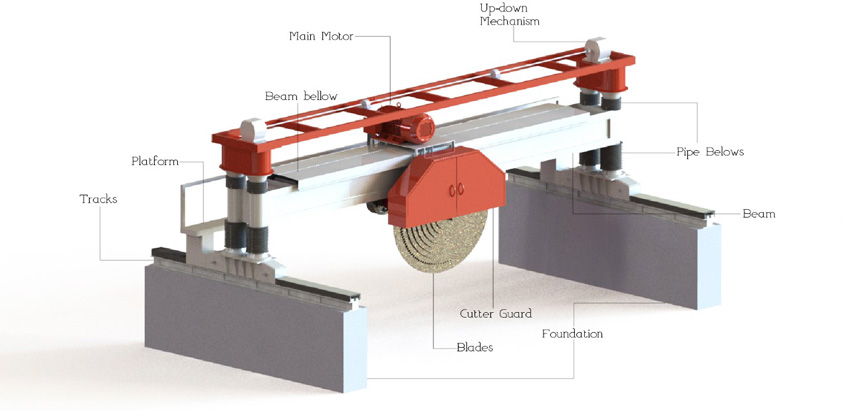 Column assembly consisting of two chrome platted pipes on the each side (4 pipes in total). Column assembly provides vertical linear motion to the beam. Chrome plated columns also ensures the high-precision, high-rigidity, energy-saving, high-speed motion with long service life.